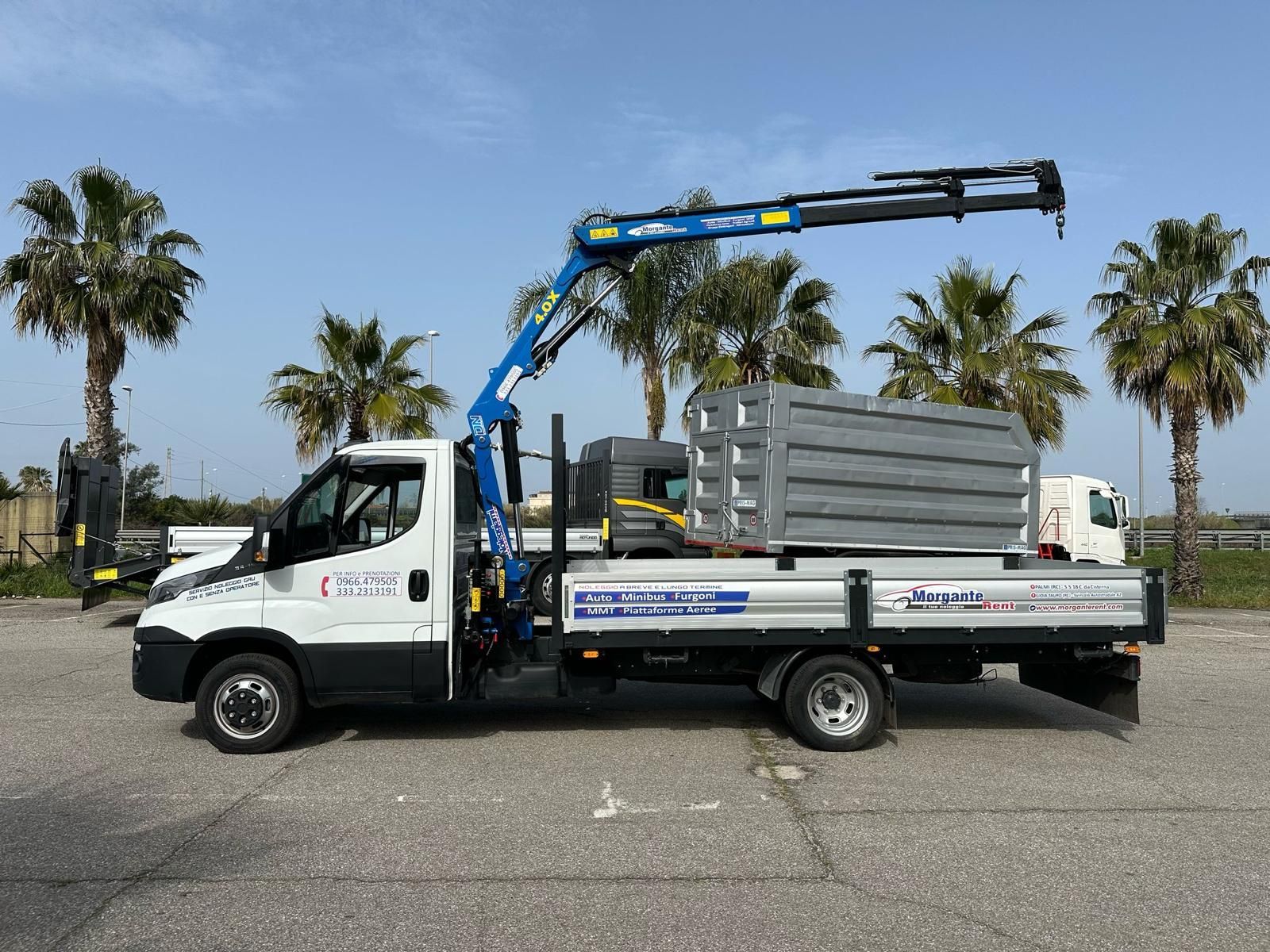è un ribaltabile per patente B. Ottimo per il trasporto di olive, arance, mandarini, legna da ardere, materiale edile, ecc. Possibilità su richiesta di sopra sponde per una portata complessiva di 7 metri cubi.